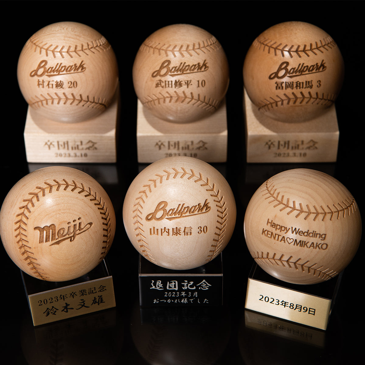ボールと台座にそれぞれお好きな言葉、マークを刻印いたします。