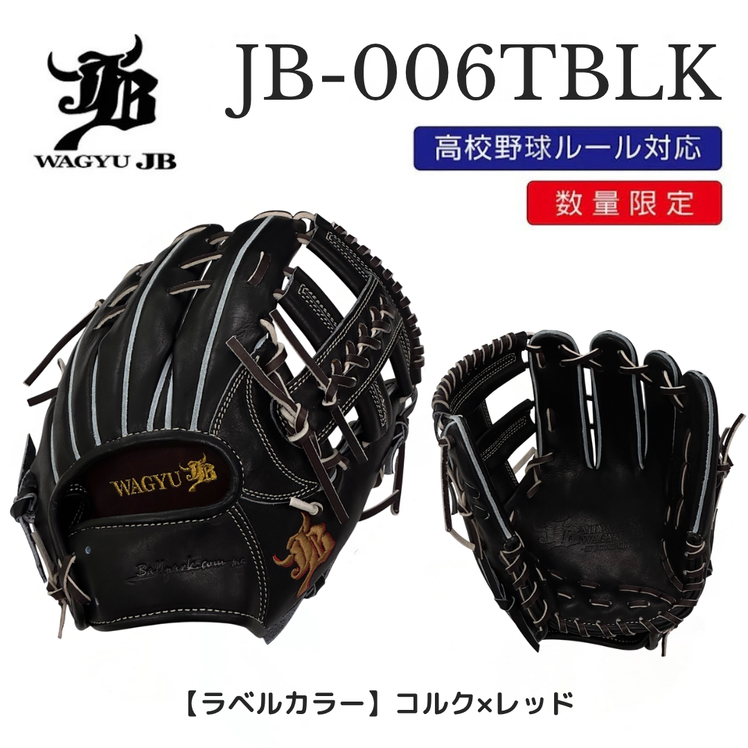 内野手用として人気のWAGYU JB(和牛JB)グラブ【JB-006T】モデル、こちらの限定モデルが数量限定で販売開始。定番にはないカラーリングとデザインに限定モデルのみ対応の「和牛JBロゴ」刺繍入り(裏平部分)、数量が限られておりますのでお早めにお買い求めください。