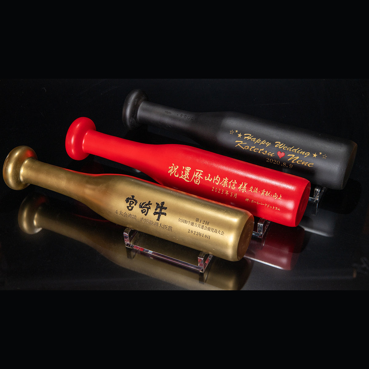 ユニークな形をしたボールパークドットコムオリジナルの野球記念品。45cmミニデカバット。結婚祝いや優勝記念など、特別な記念品としてご利用ください。