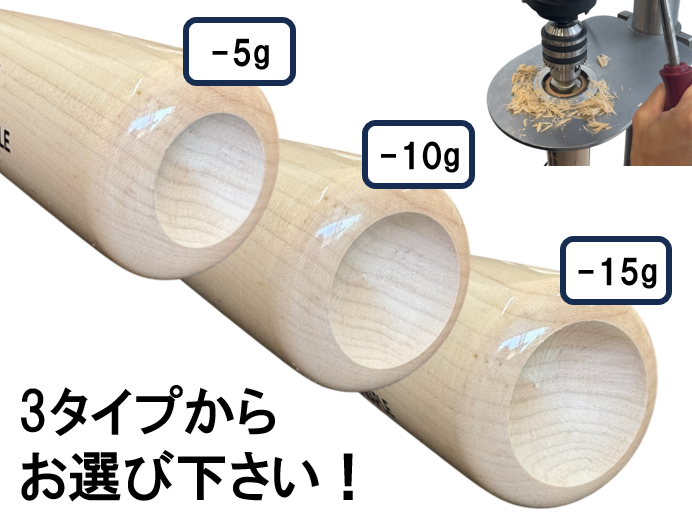 バットの先端部分をくり抜く事で全体のバランスをグリップ側への微調整し、操作性をあげることが出来ます。また軽量なバットを好む選手にもおすすめです。