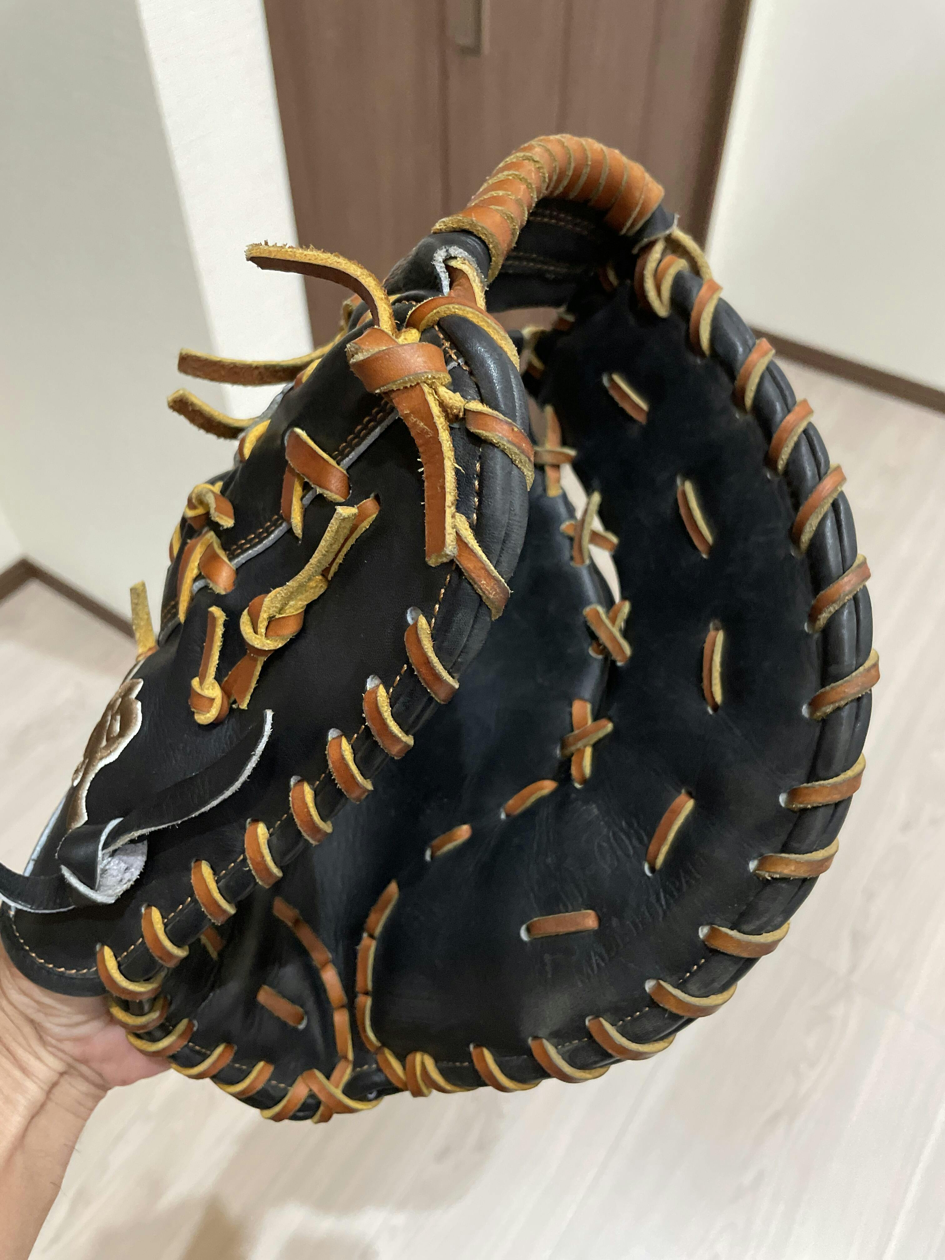 深めのポケットが特徴的でオーソドックスに使える一塁手用のミット。送球や強い打球の捕球が多い為、ウェブ周辺は太めのレースを採用。