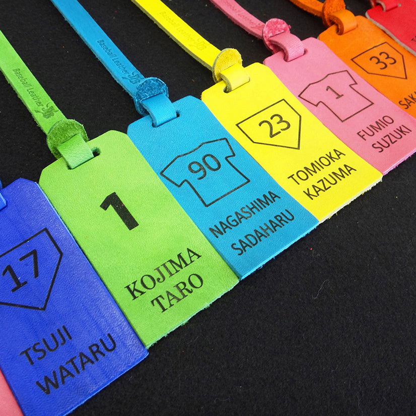 グラブの革でつくった本革のタグで「Made in Japan」です。(宮崎和牛本革使用)